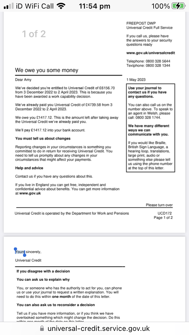 That’s not what you said in your other thread. You said you sent your first fit note on 9th August. If the fit note was backdated then they don’t usually accept those.amy86 said:But my first fit note was handed in on august the 3rd 2022 x0 -