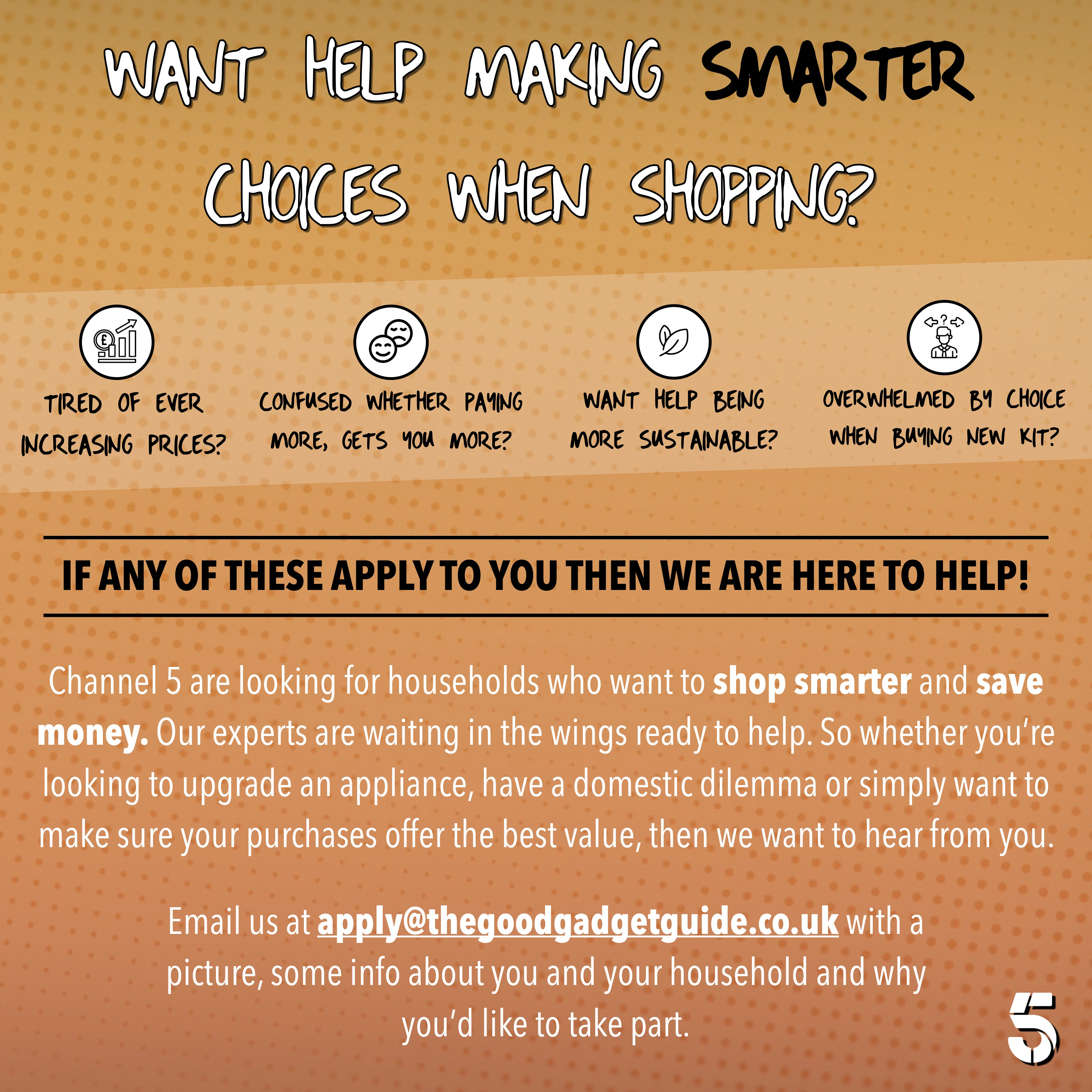 Channel 5 are looking for households from all over the UK who want to shop smarter and save money!