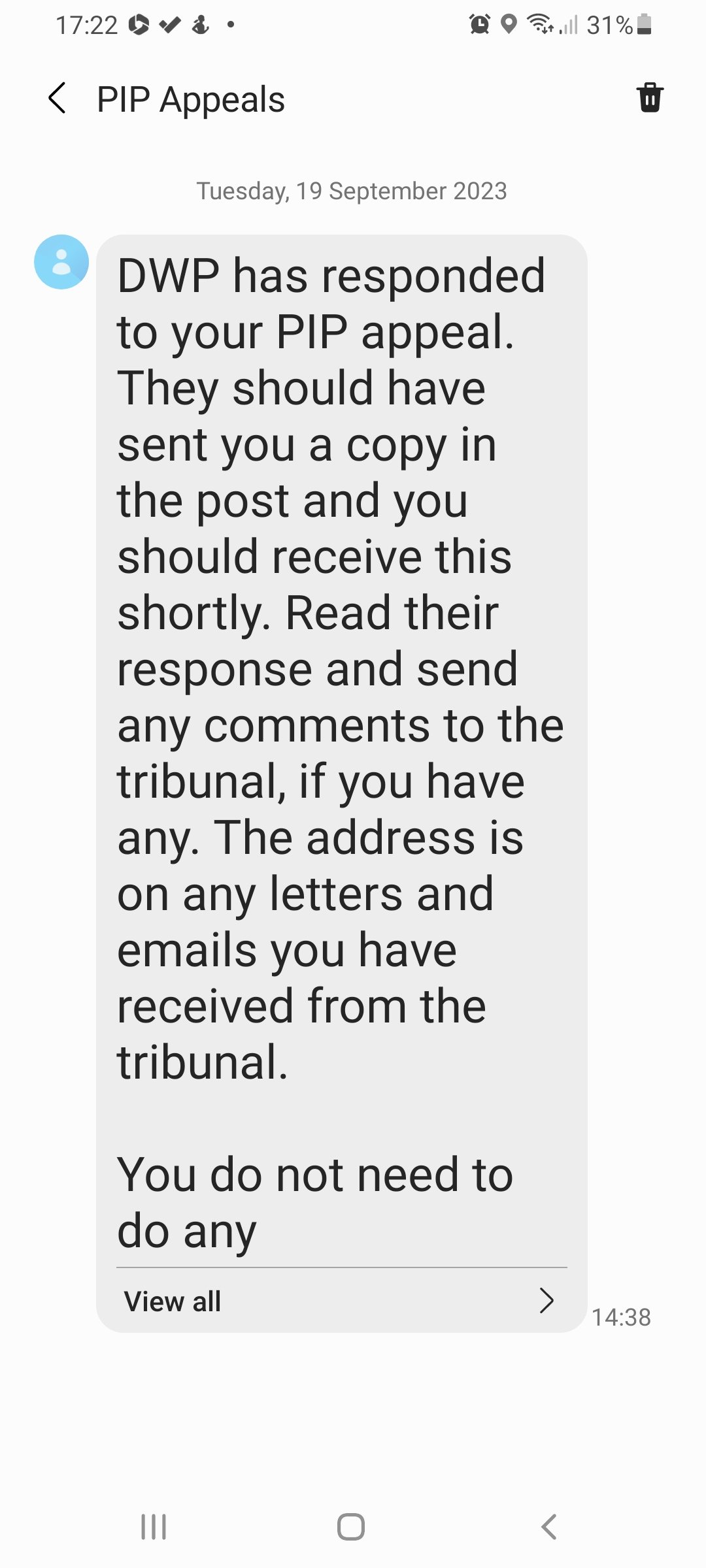 Pip appeal message