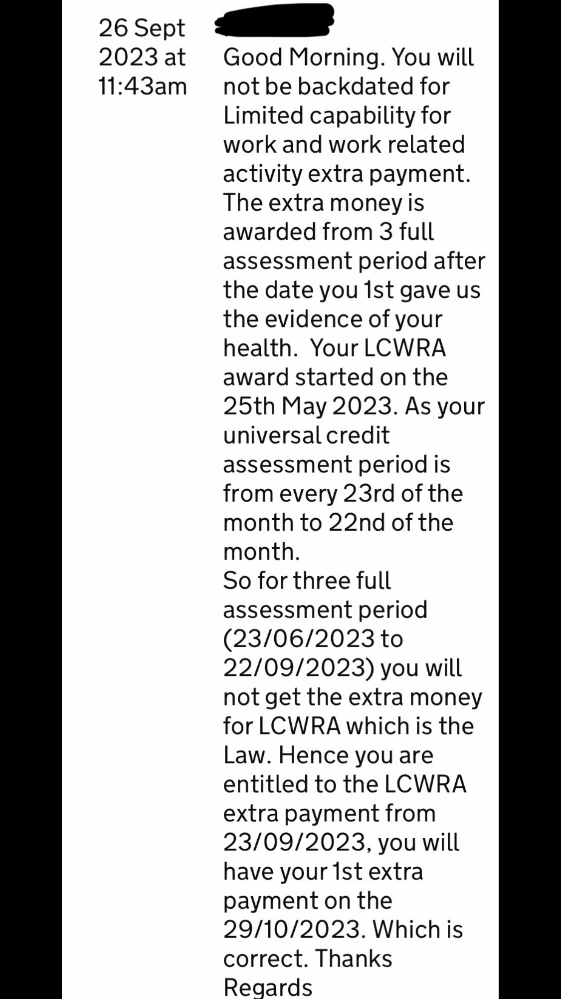 Hi, I’ve received a reply regarding LCWRA that I was awarded on June.