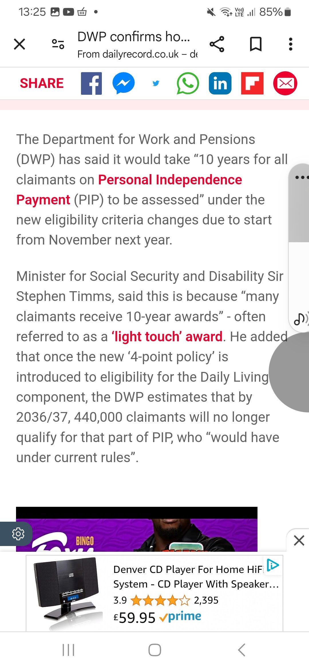 Disability talk with Steve’s new video says according to the OBR 1 in 10 will lose pip. This was said by Timms. Not sure how they come to that number but he mentioned behaviour and conditions worsening. wonder if they’re taking into account people fighting to get a 4 now . As for conditions worsening why the constant assessments if the know most people get worse not better