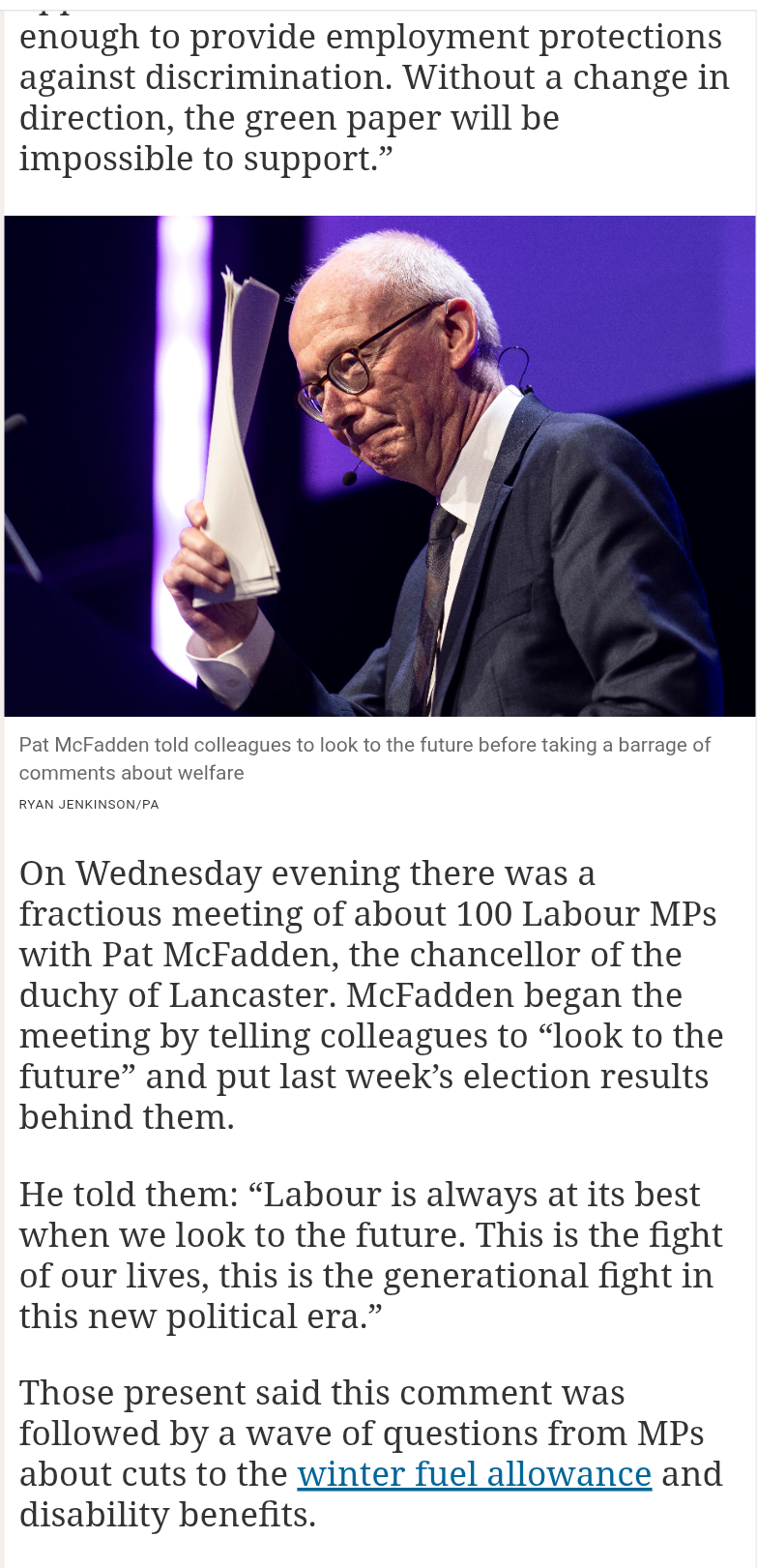 If anyone on here has DPAC on Facebook could they look at a post from this morning from their admin regarding the times article. I think the post is Richard burgess. In the comments someone posted a screenshot of Ben claimant YouTube ( he’s channel posts videos from Ellen Clifford). He reckons after what he’s heard in the press plus from people he’s spoken to the Tory’s are voting against and it’s just reform 5 for cuts plus Labour . I don’t know if it’s true and I can’t clarify.