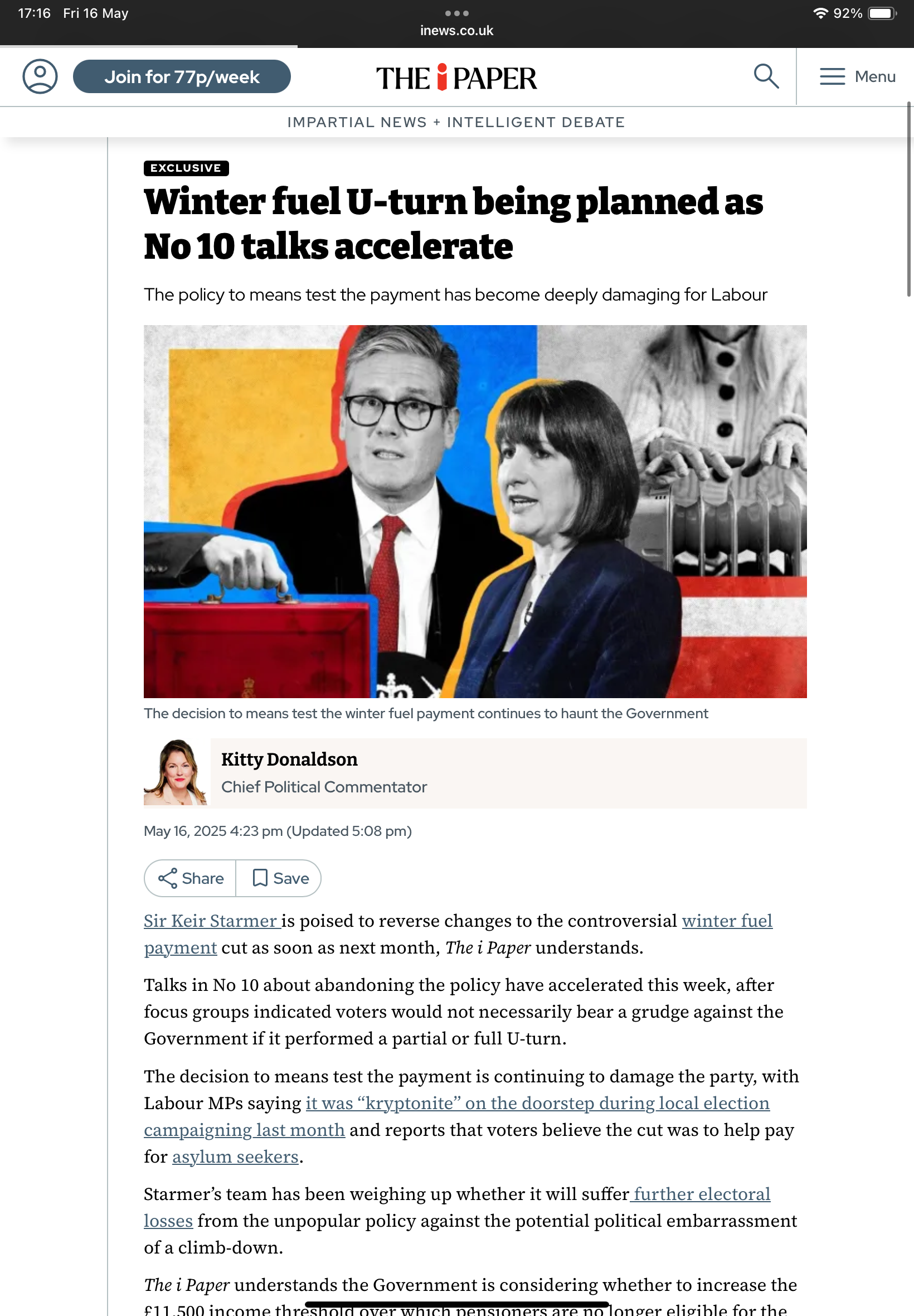the government have been reported to have changed there mind on the winter fuel payments this gives me great hope that the pip cuts will be next