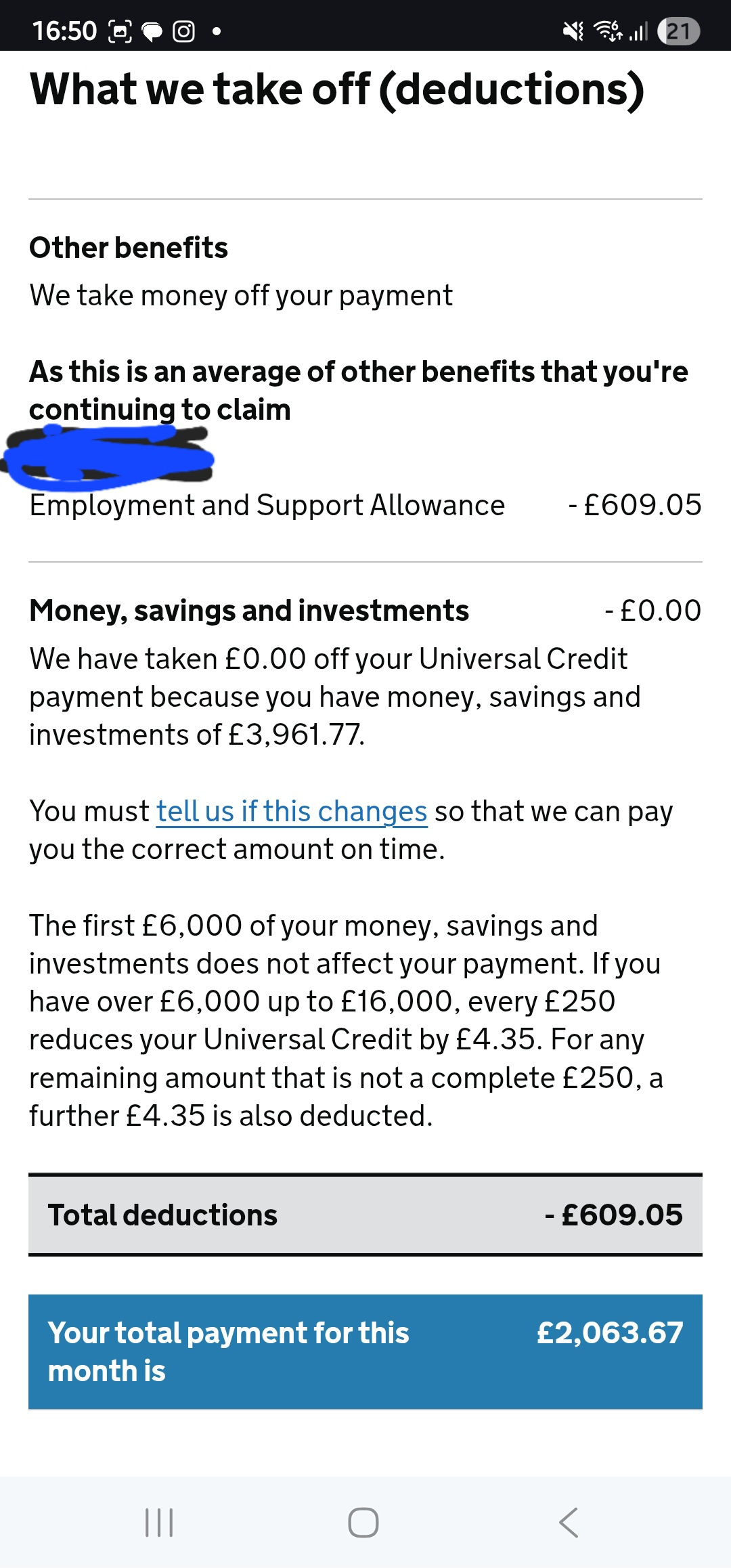 So we weren't sure where the carer's allowance is, already in ESA or TP?