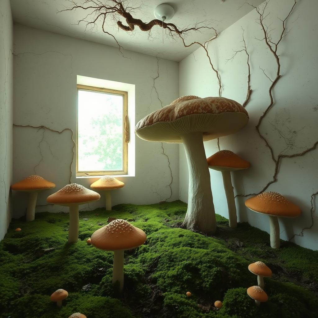 You've really outdone yourself. Having tried doing AI art myself, I know the credit doesn't belong just to AI. Yes, indeed the roots are creepy to me too. I think it's because you don't know where the roots are going to go, making it feel unpredictable. Also it leaves to the imagination that the whole 'Mush'room might get filled with roots, leading to a no-way-out claustrophobic feeling. Mind you my imagination runs rampant at the best of times π