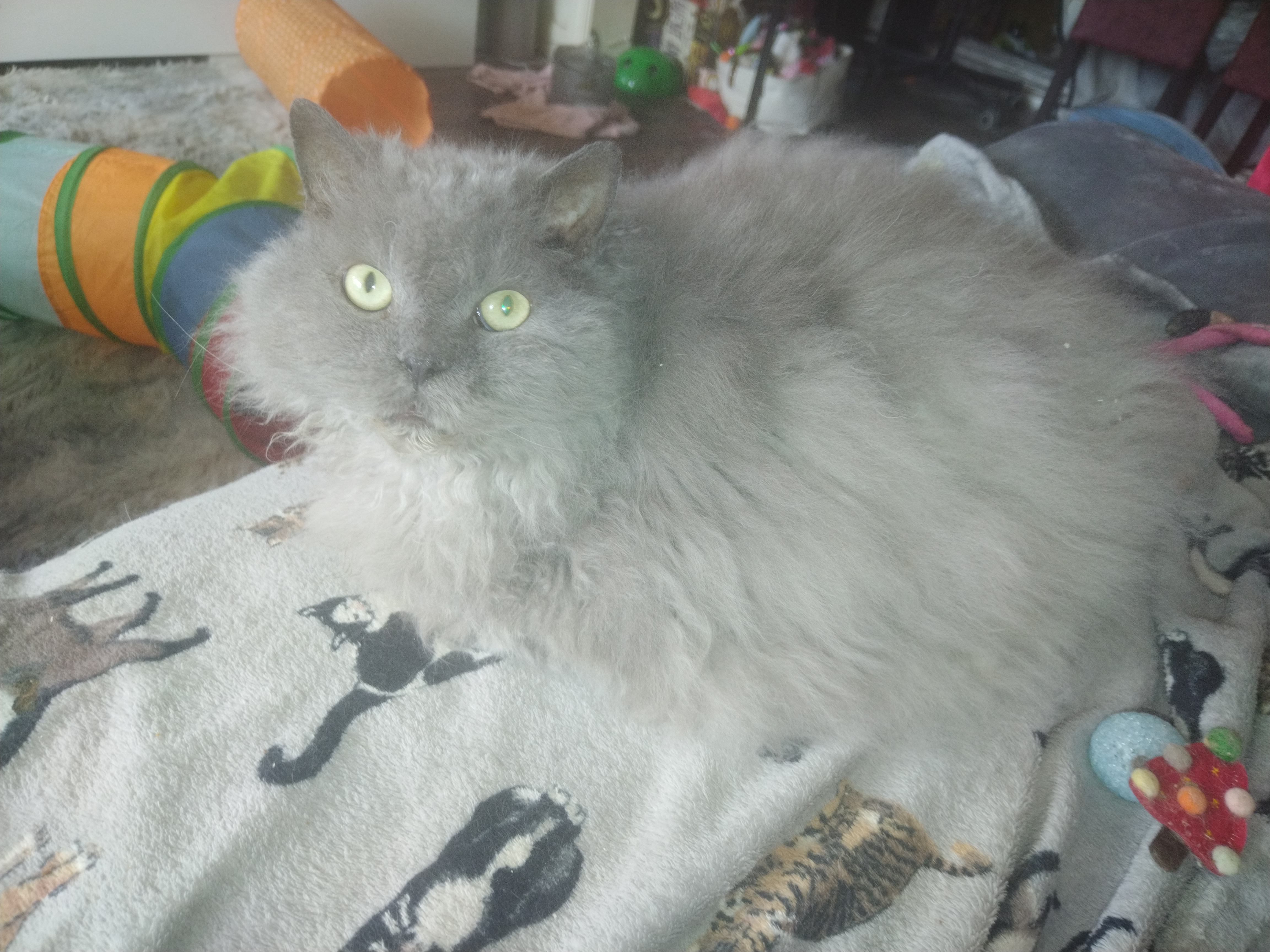 He's a long haired Selkirk rex straight hair