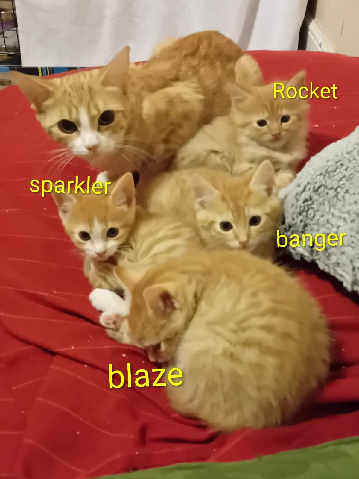 Just thought Id give a recent update by sending these pictures of the rescue cat I helped and her cute brood who are all still in foster care. She/mamma cat also got spayed today too ๐ฝ