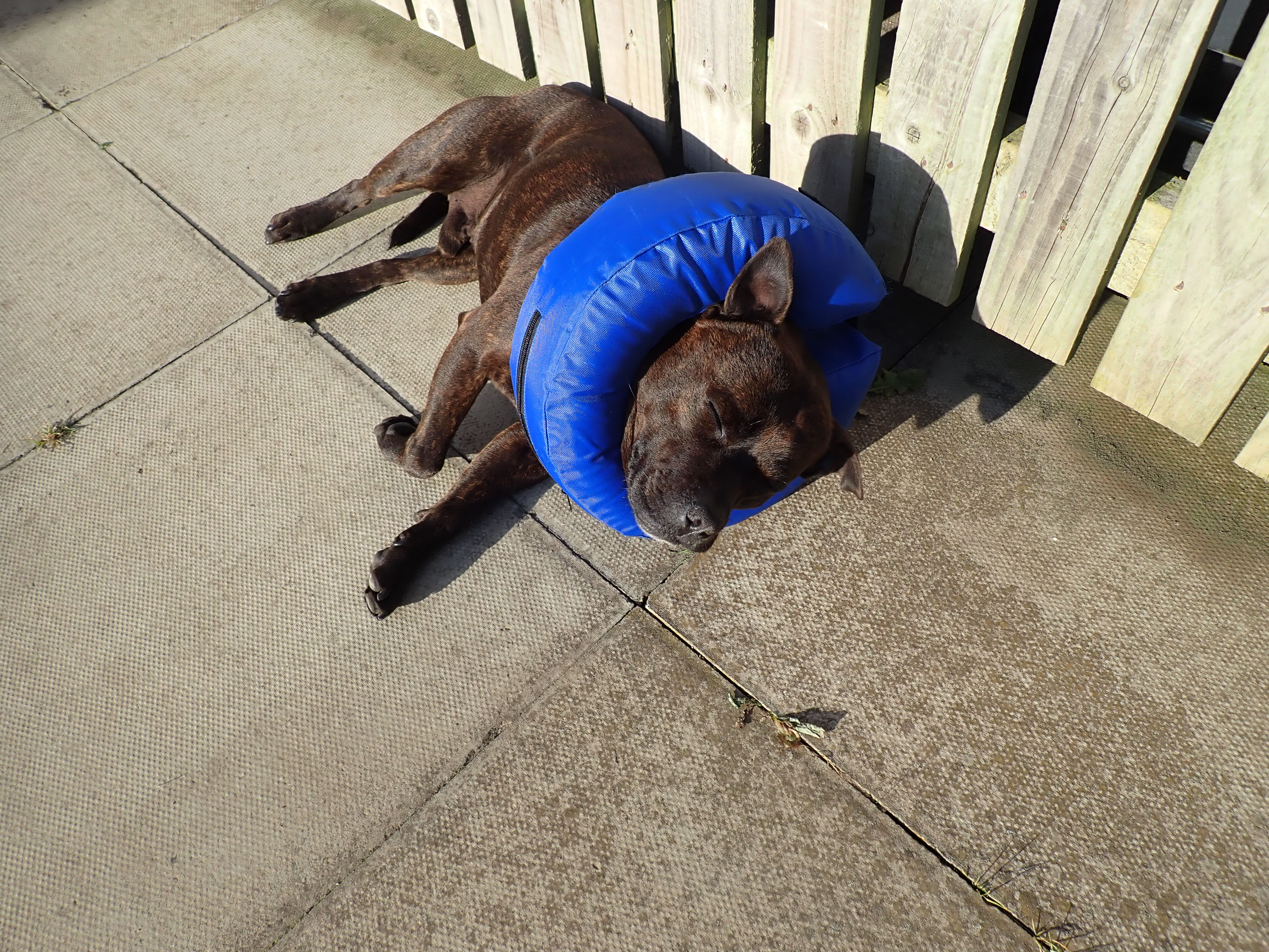 I have an inflatable cushion for Gus, it fastens with velcro. He used it after castration and when he got torn by barbed wire. I think it is more comfortable, but i've never worn it to find out!