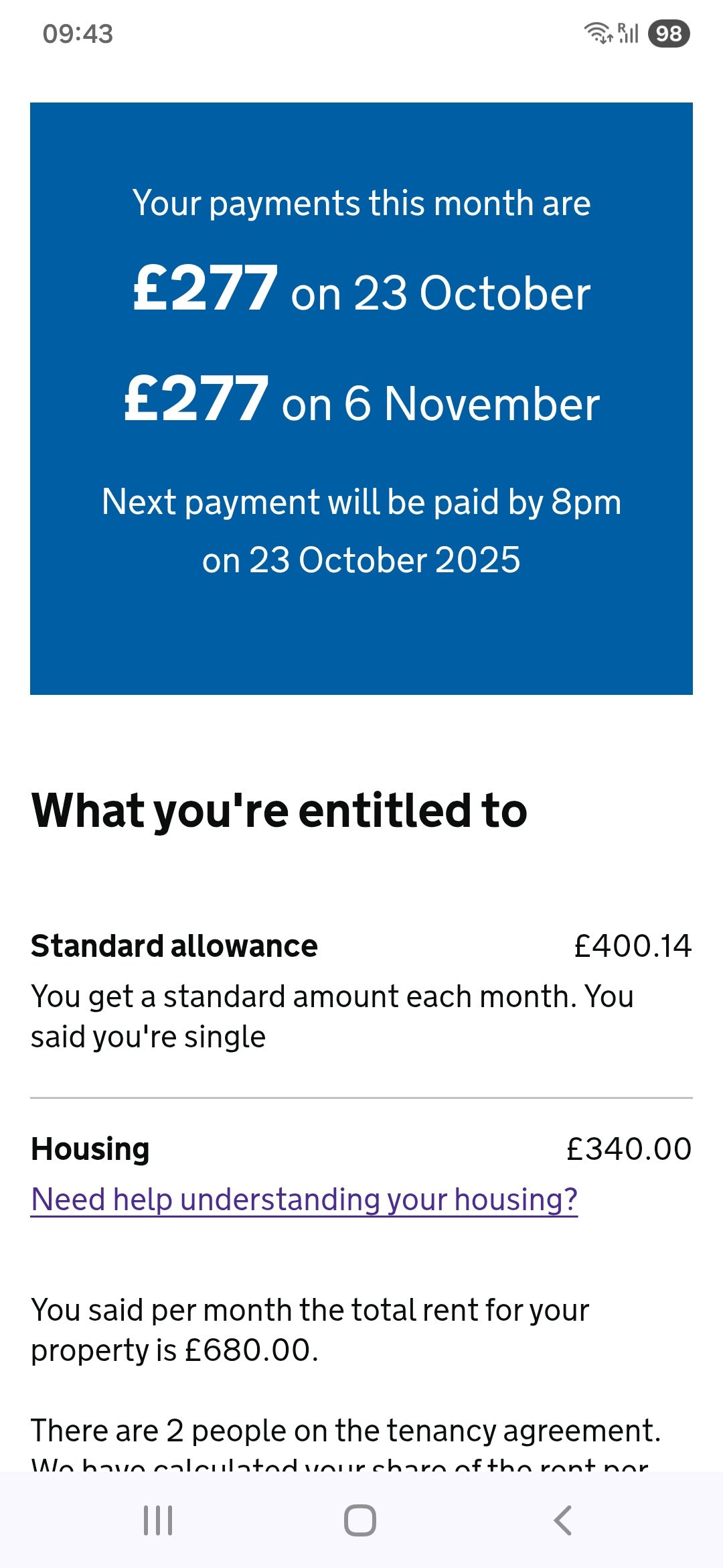 Hi Kimi87 I've just got an updated statement on my journal but still not sure if I'm getting housing element. Was wondering if I screenshot it would you mind taking a look