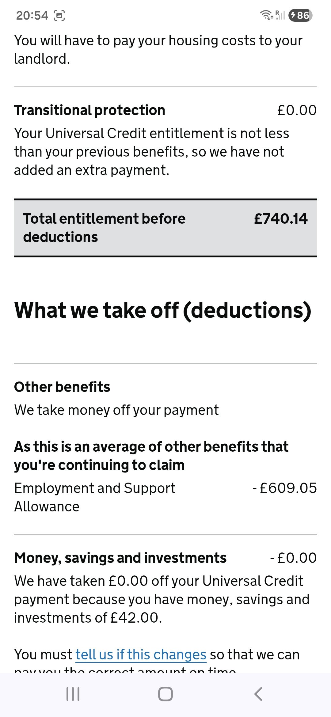So your income is £740.15 a month. Which exceeds your previous ESA award (approximately £700).