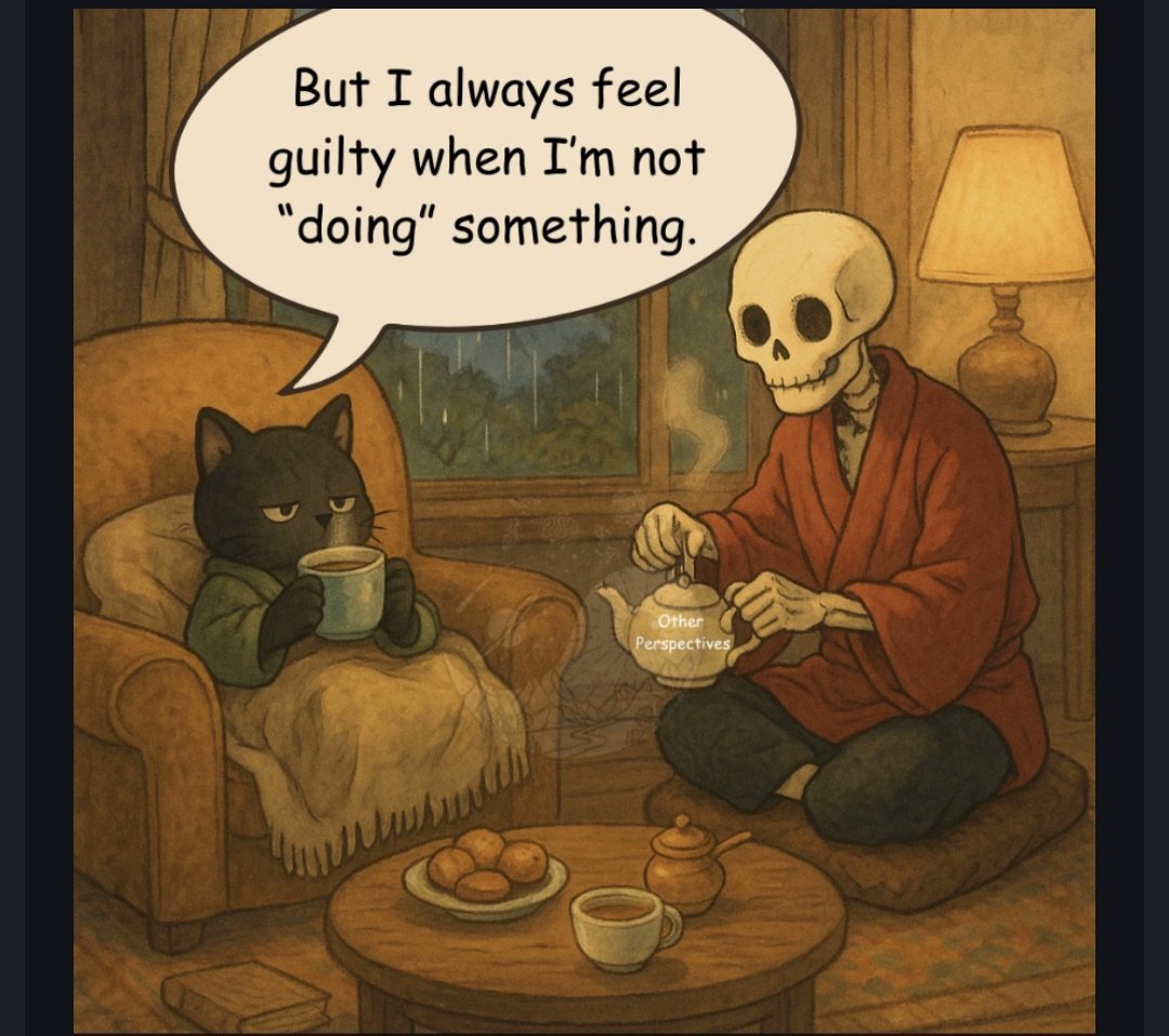 @StarryEyed That is a wonderful example, Starry! It reminds me of Mindfulness for Health, the book by Vidyamala in which she tells a story of a woodcutter who seemingly has no time to sharpen his axe and therefor has no other choice than to work with a blunt instrument while 'he huffed and he puffed'. LOL.