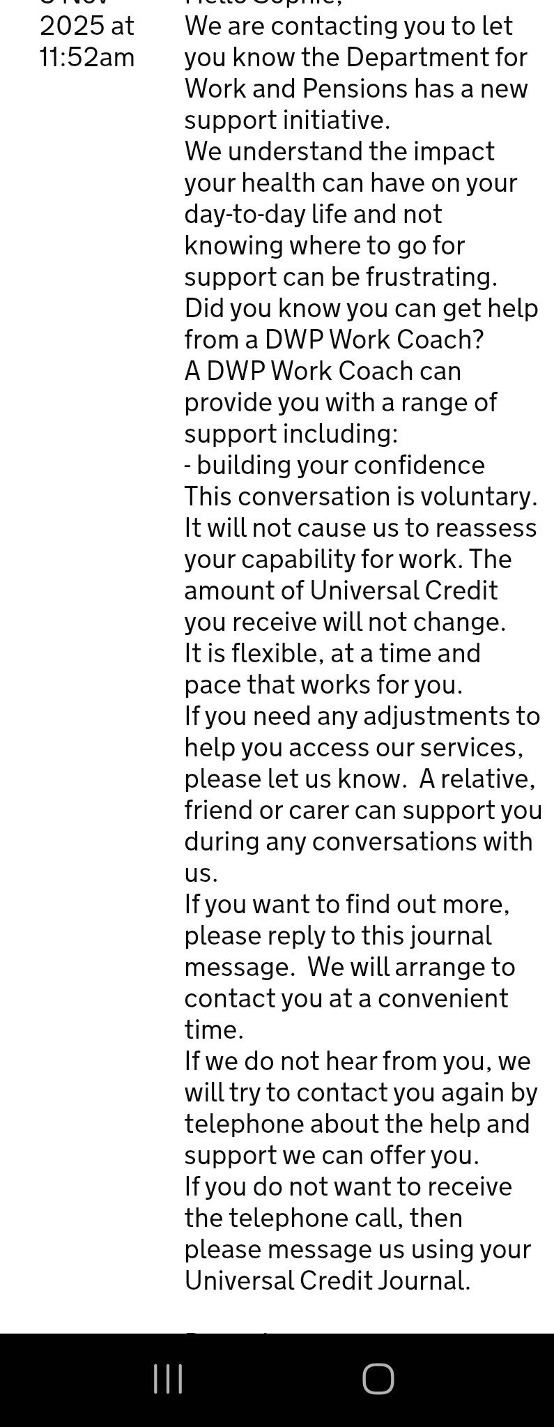 HHi My daughter has recieved a message today about a new thing with dwp and helping people back in to work it says its voluntary but then says if u dont reply they will call you she isnt well enough at the moment she doesnt know what to do any help would be grateful shes so stressed out