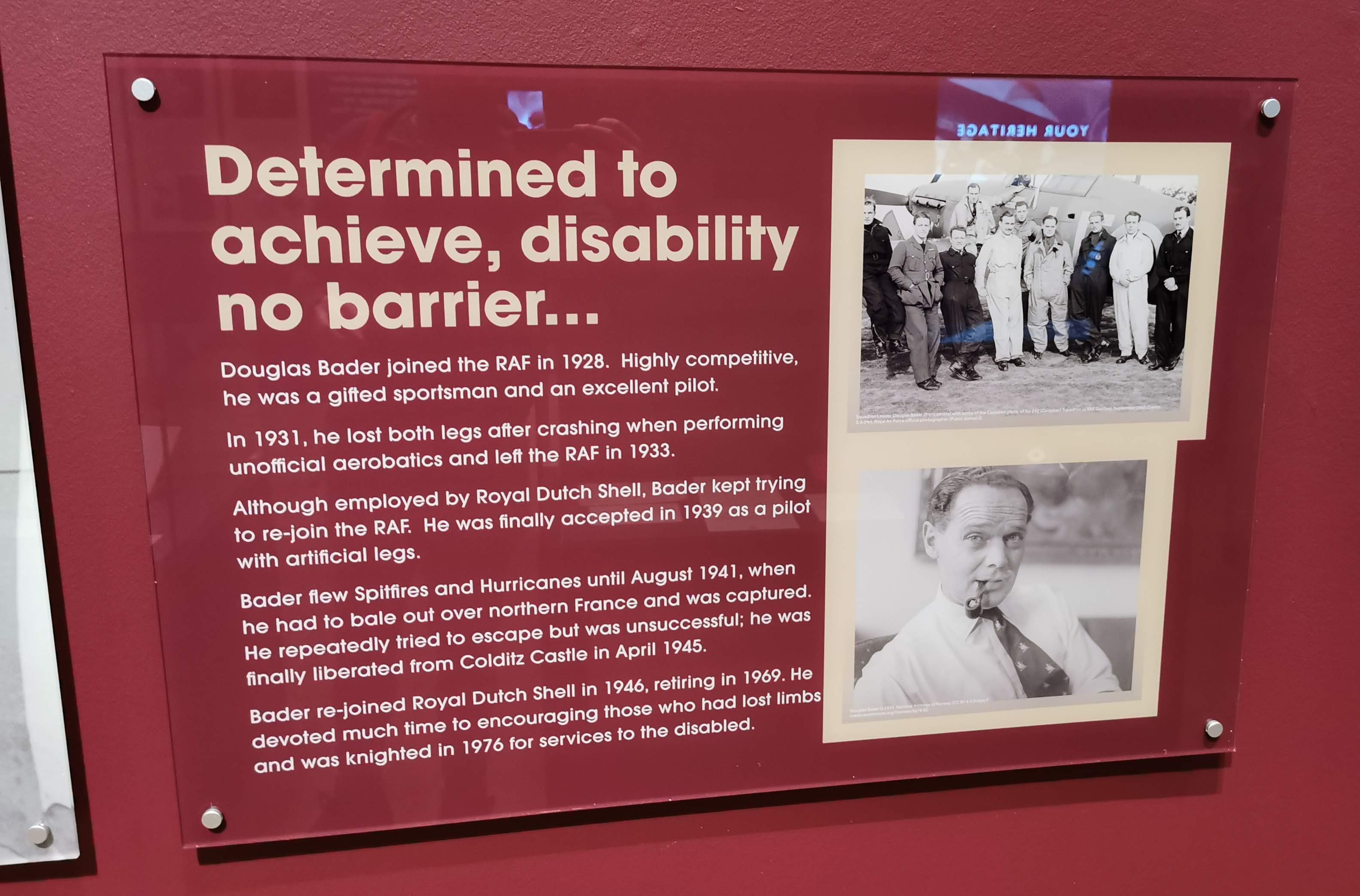 Post War Bader returned to his work at Shell and later became managing director of Shell Aircraft. Bader became a prominent advocate for Disabled People, Campaigning tirelessly to improve the lives of Amputees and others. For which he was knighted in 1976.
