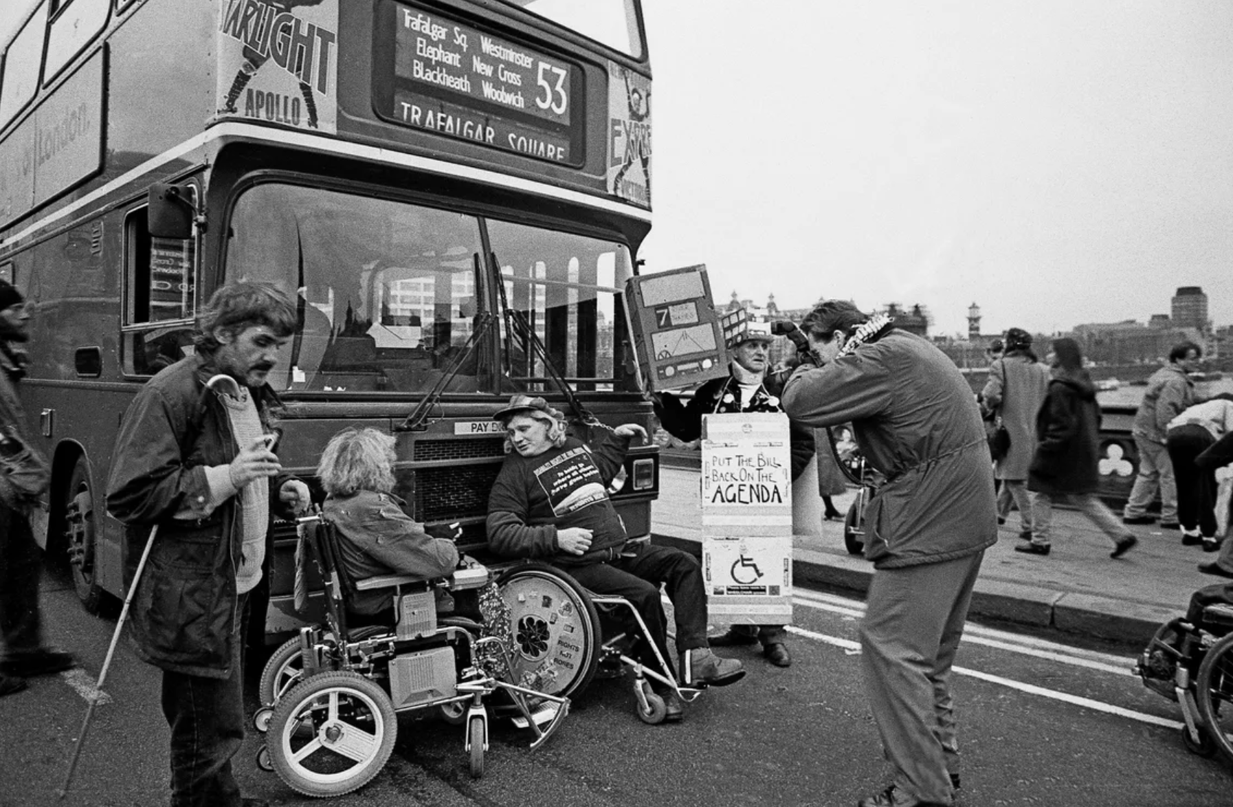 DAN arranged protests and peaceful civil disobedience to advocate for disabled people's rights. Protesters blocked roads, chained themselves to buses and ultimately made themselves a nuisance to highlight discriminatory processes across the UK.