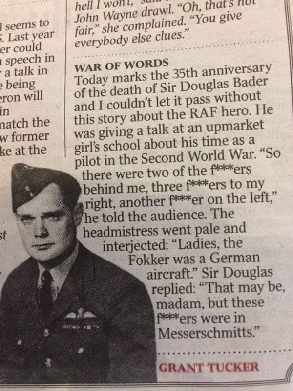 @Zippy1983 I love the story of Douglas Badar and the film "Reach For The Sky" I think that's the name of the film but sorry if I've got it wrong but still love what he did and how he never gave up to do what he wanted.