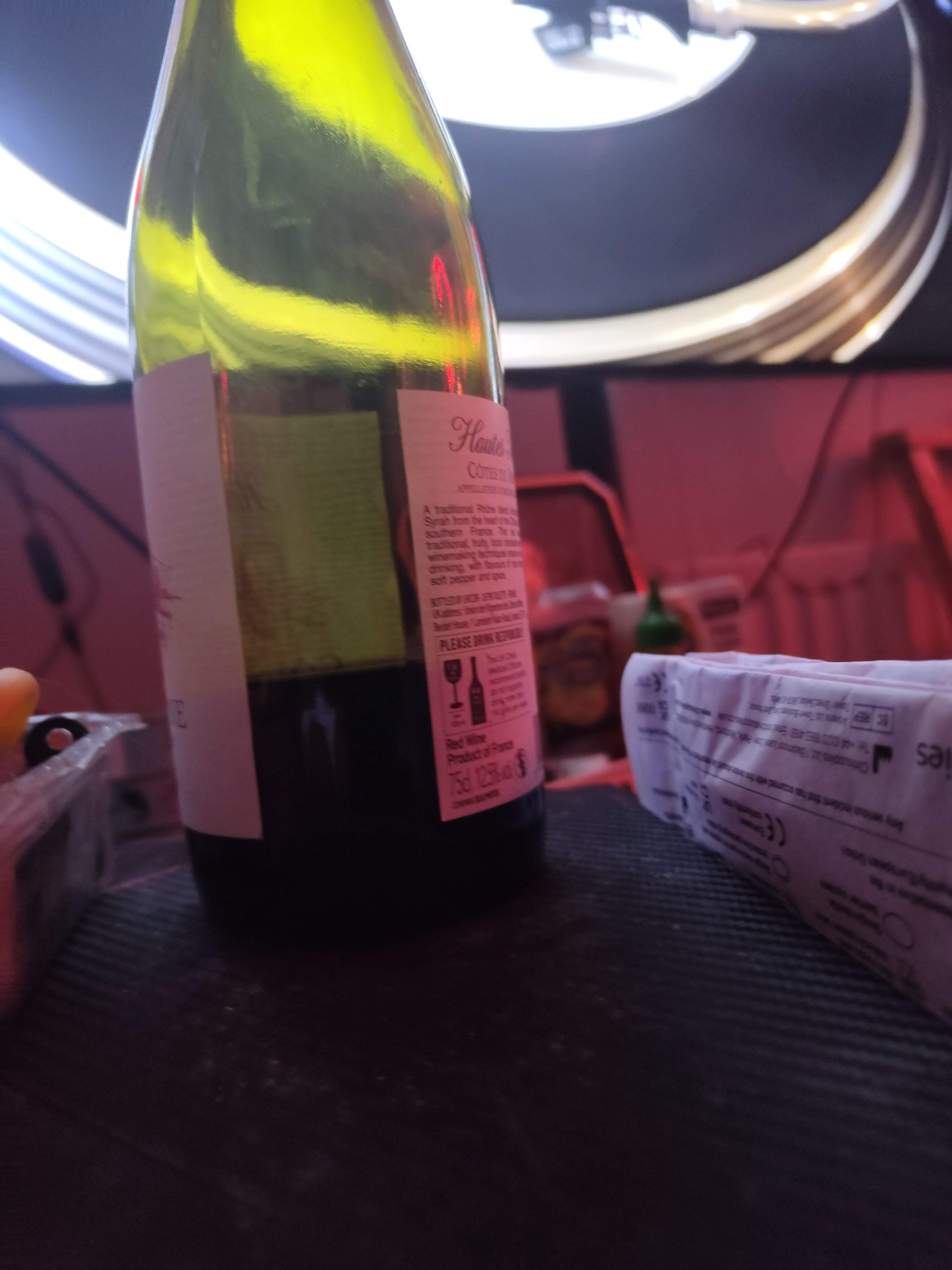 What's left of the bottle of wine I had with my dinner last night is on my wheelchair however.