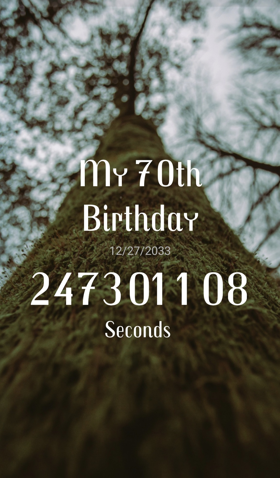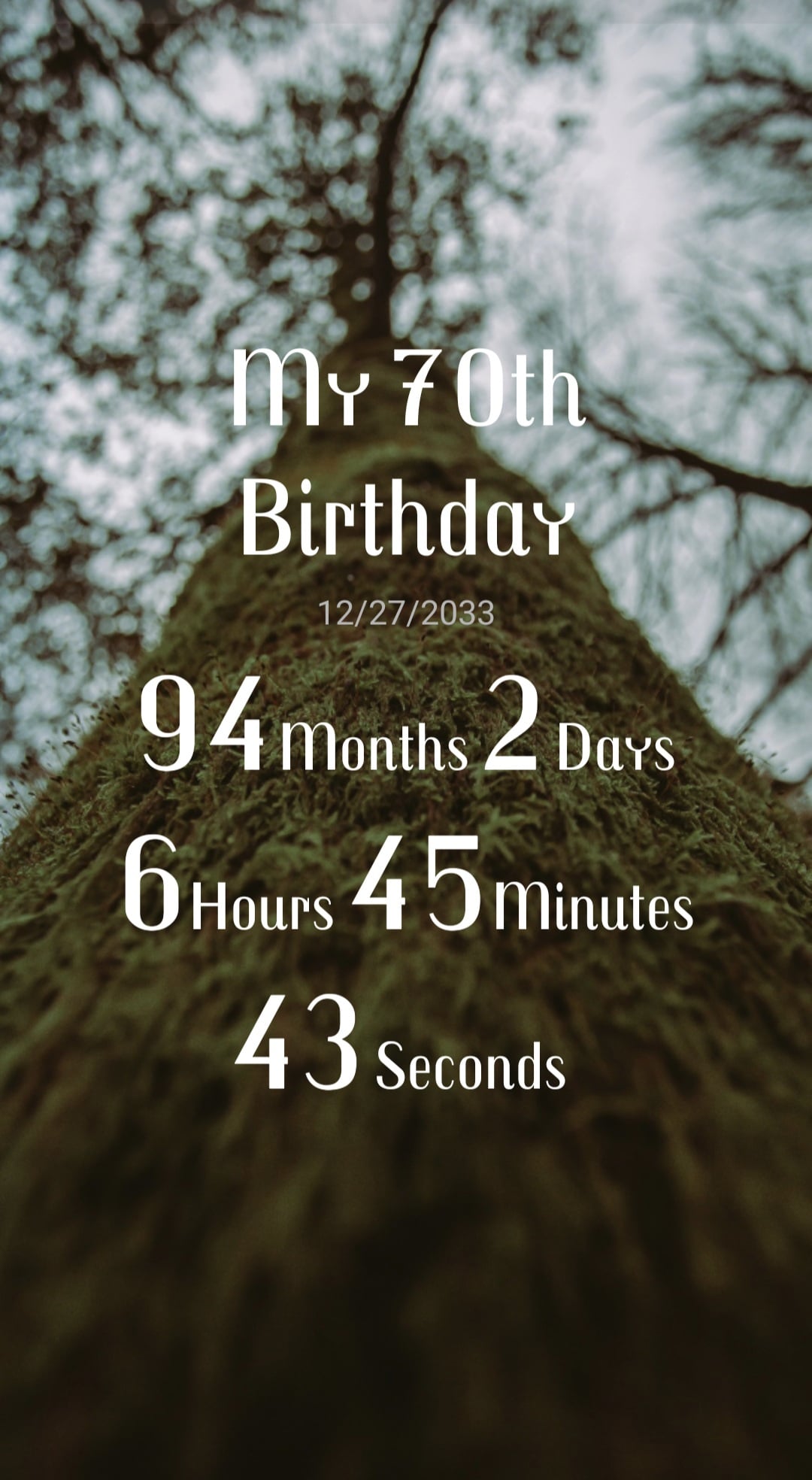 You know, I have a countdown timer app with some of my birthdays scheduled so that when it gets too much, I look at how long I have to go to get there. I often change the units to make it a little more interesting, like seconds and weeks or days or months. But hopefully I go really soon. I have planned end-of-life care through advance directives and have almost finished planning my funeral. That really helps too, to be picturing the end better. I also have a DNR on my medical records. These measures really make the now more doable.