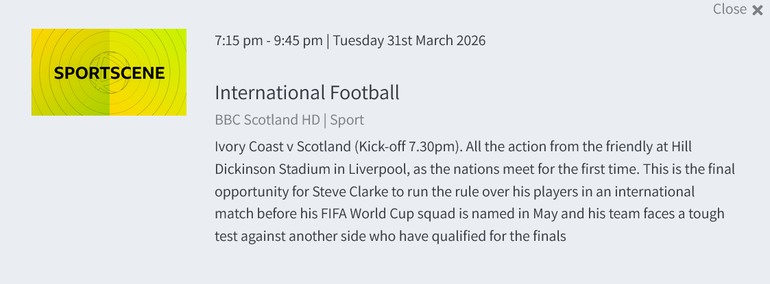 Both woeful matches mate, England and Scotlands.Can't understand the booing at Scotlands though..Scotland missed some pearling chances and so did England. The refeeing at Englands match with his two yellows and no red and var taking an age. I watched Scottish match on iplayer.