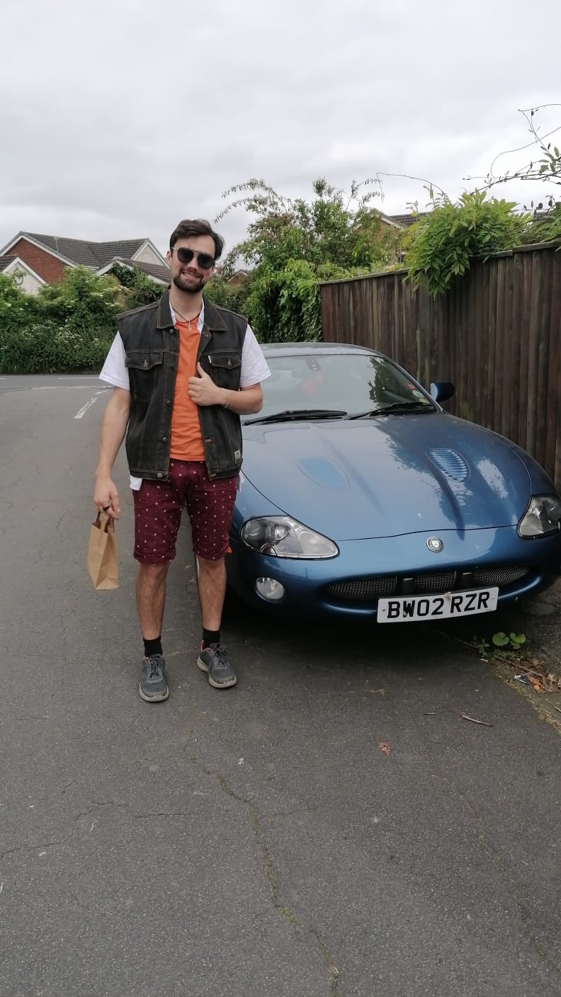 That's my cousin and the XKR, only photo I could find. He's @ 6'2" tall.