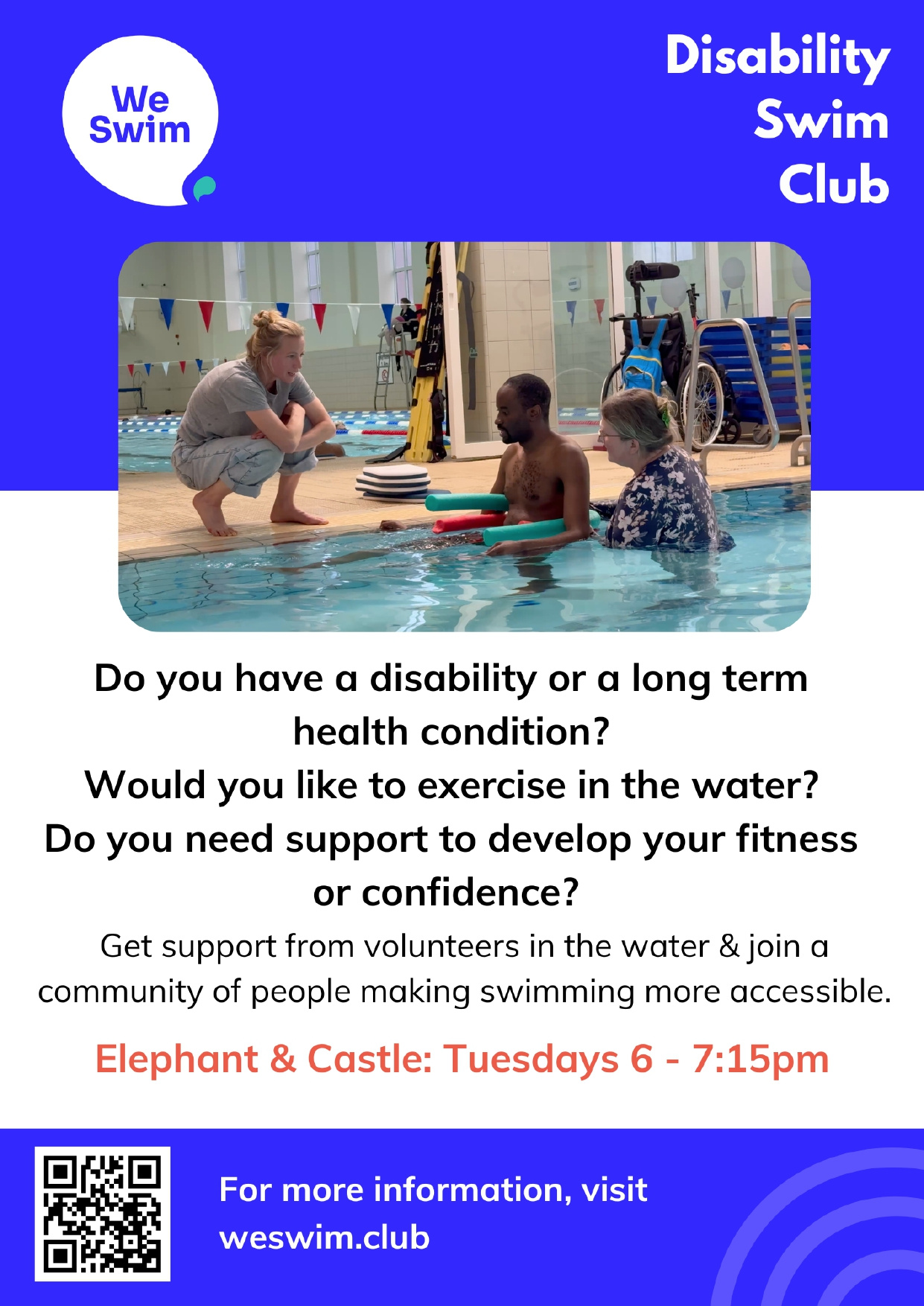 WeSwim is starting a new disability swimming club at The Castle from Tuesday, 21st April (6:00–7:15pm).
