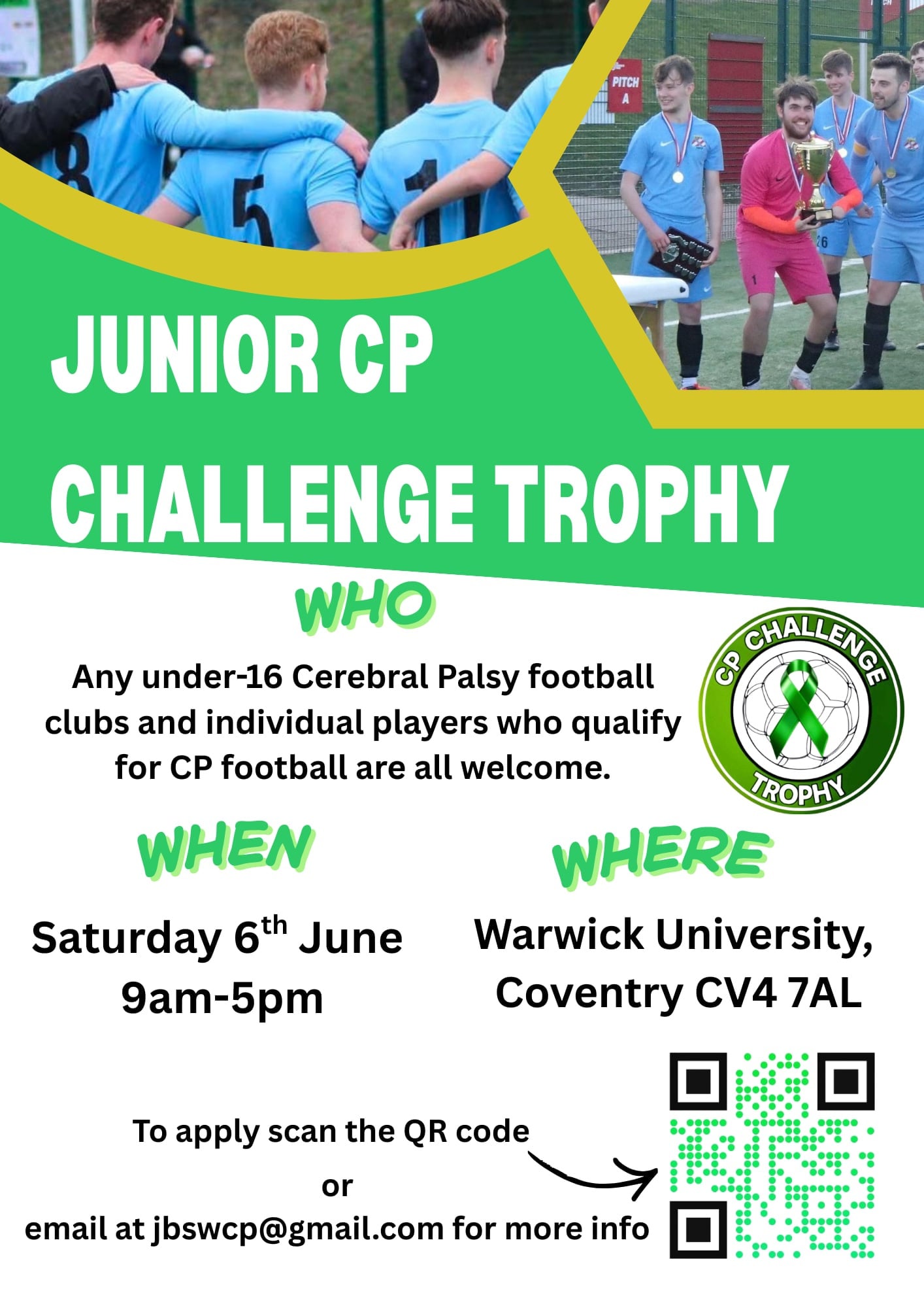 We welcome entries from Cerebral Palsy Clubs or individual players with Cerebral Palsy.