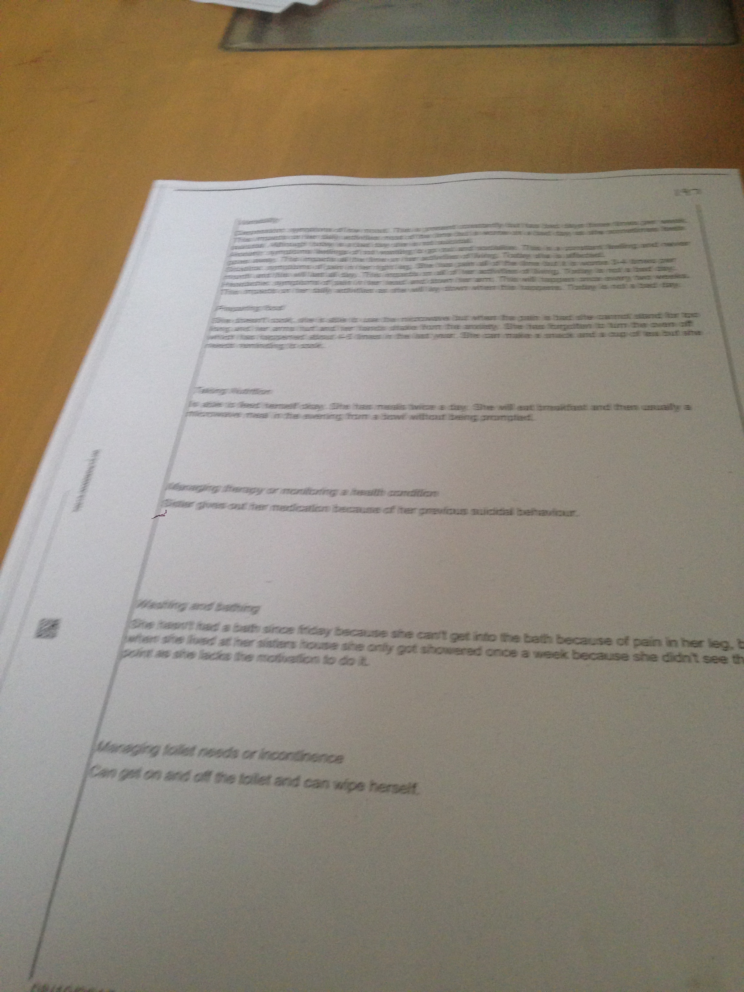 Did they give you points in relation to the medication aspect? For mine someone ordering, collecting and then supervising me take the medication scored me a zero.