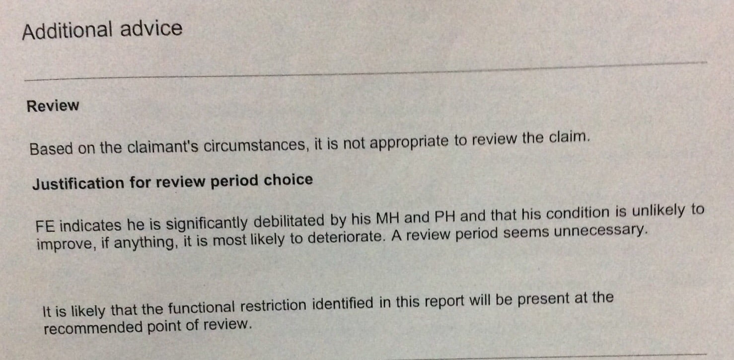 @yadnad it does indeed start, and come from the assessment assessor, and the DWP mostly will follow it. if you look at my report that will give a great example to me getting an ongoing award.