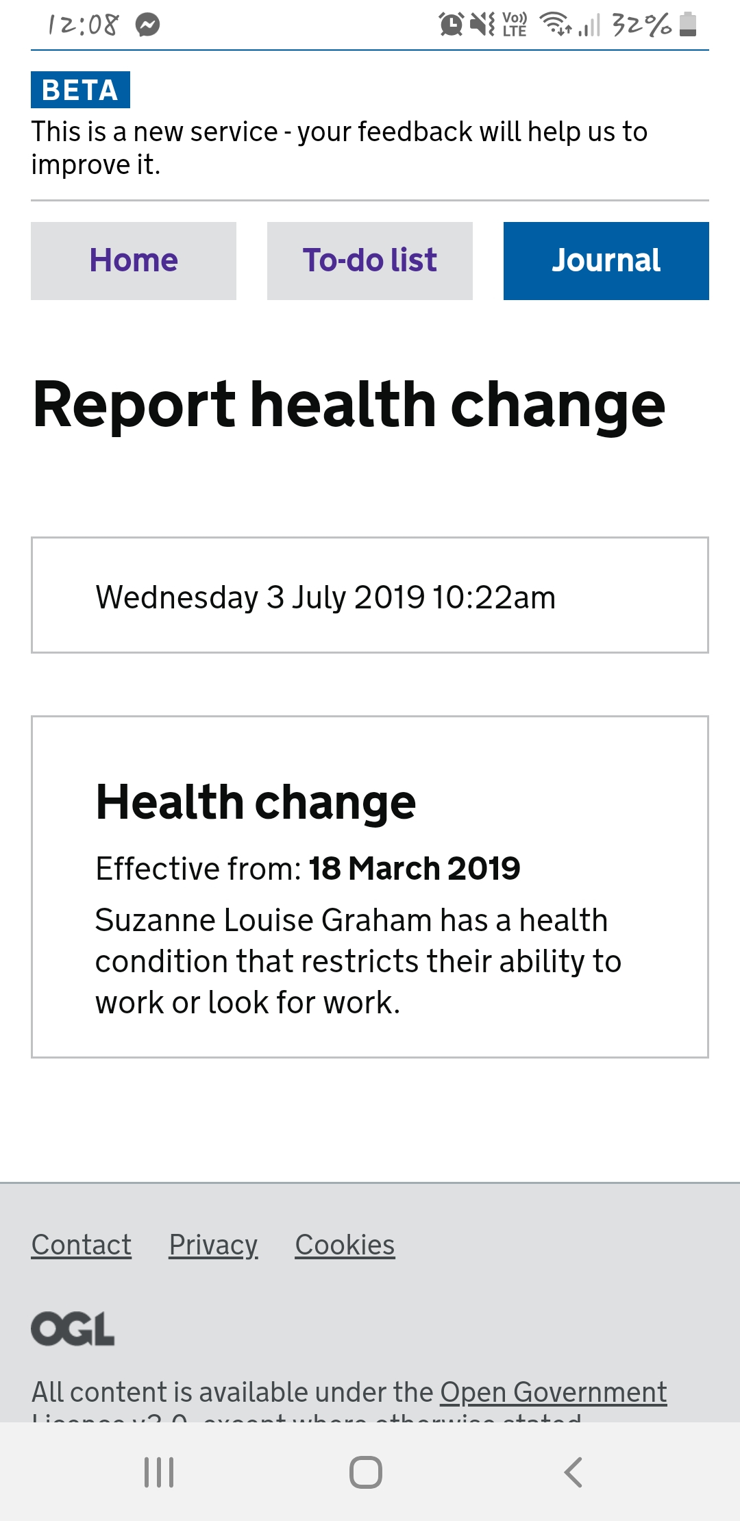 Hello @suzy_sugar2005. It's just a record of when a health condition was reported. This is saying that on Wednesday 3rd July, you reported having a health condition that prevents you from working, and that you'd had this health condition since 18th March 2019.0