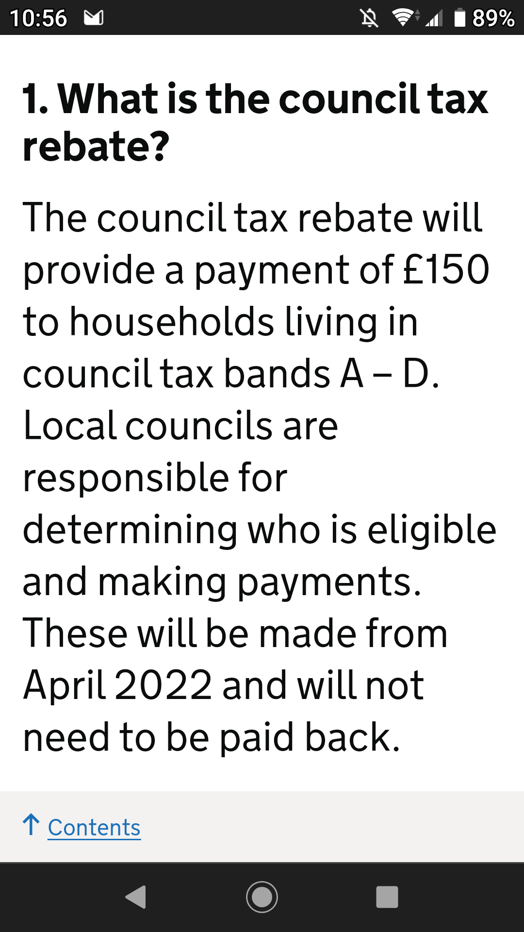 Actually, that does suggest atet it is to help with the cost of Council Tax but that isn't how it was presented when introduced. As worded now the most logical thing would have been to apply it as a credit to CT bills instead of going through the hassle of making councils pay out the money. Bit of a shambles really.poppy123456 said:If you read the link i posted above you will see this.... the government has introduced a £150 council tax rebate. This will mean that council tax costs will not rise for the majority of people, .