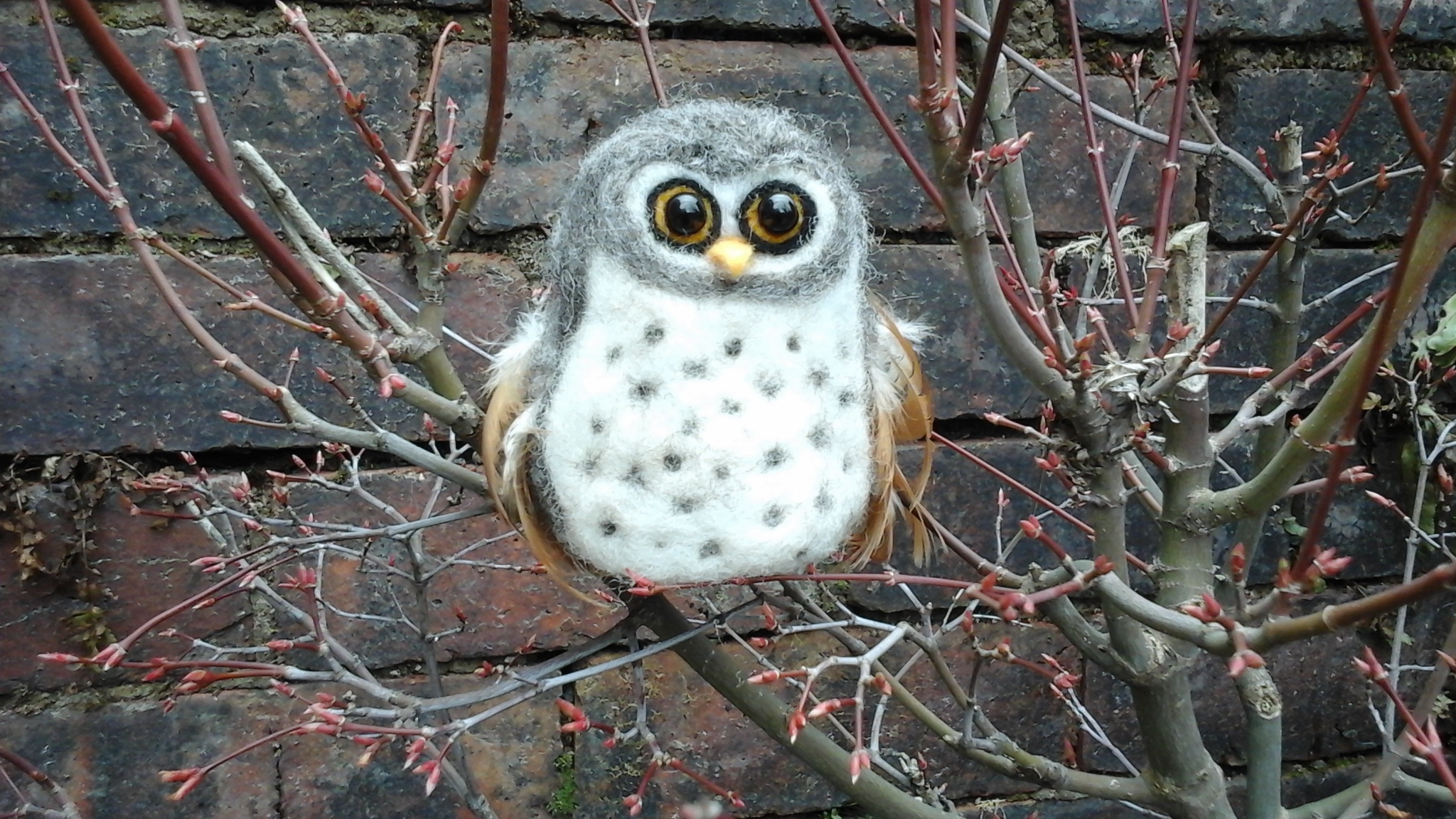 I have used some naturally-moulted feathers from my hens on the owl. I don't feel I'm very skilled at needle felting, but if you google 'needle felted animals' you will be amazed at what people can do....some of the animals look real.2 -