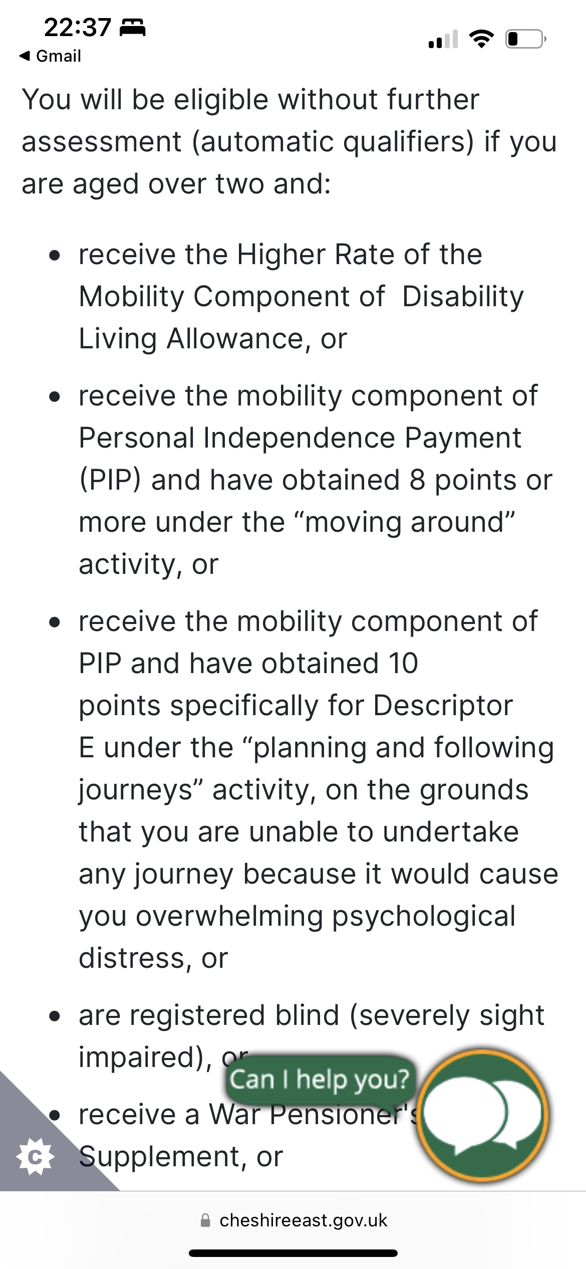 You would qualify automatically under Cheshire East council. It’s a shame other councils don’t operate the same criteria.