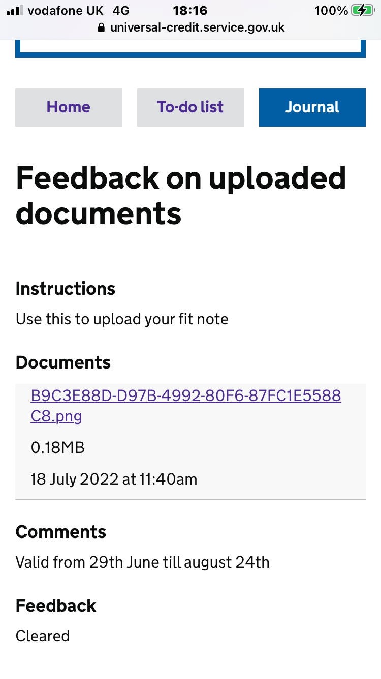 Work coach would send a link to my journal which would ask for file to be uploaded I would choose my pictures and select screen shot I had taken of sick note that had been sent over on an email from my doctor