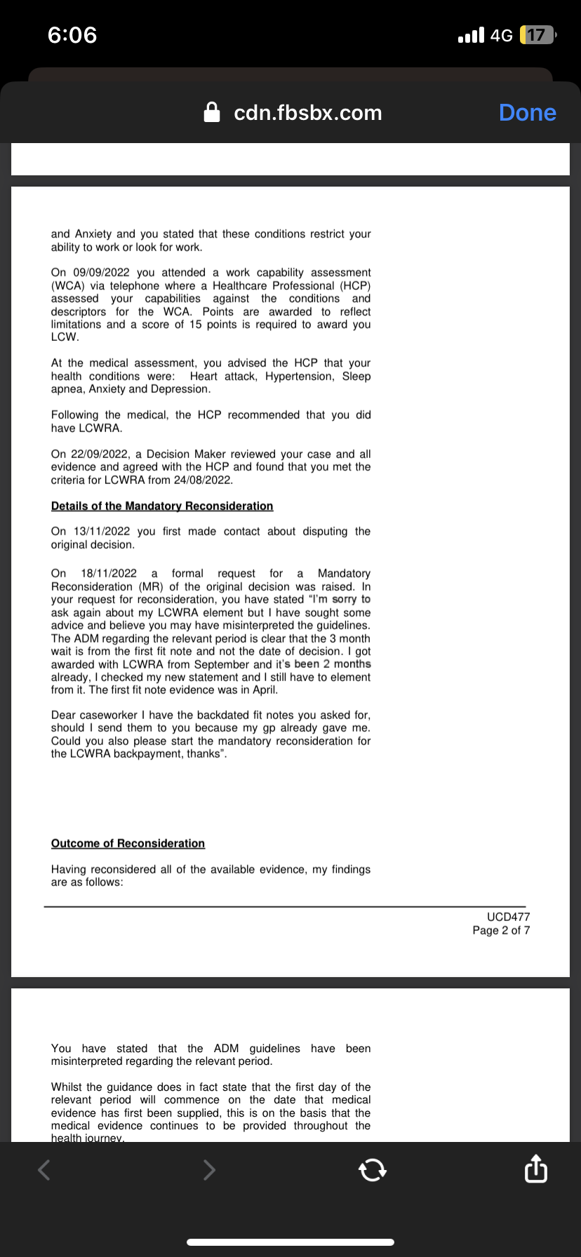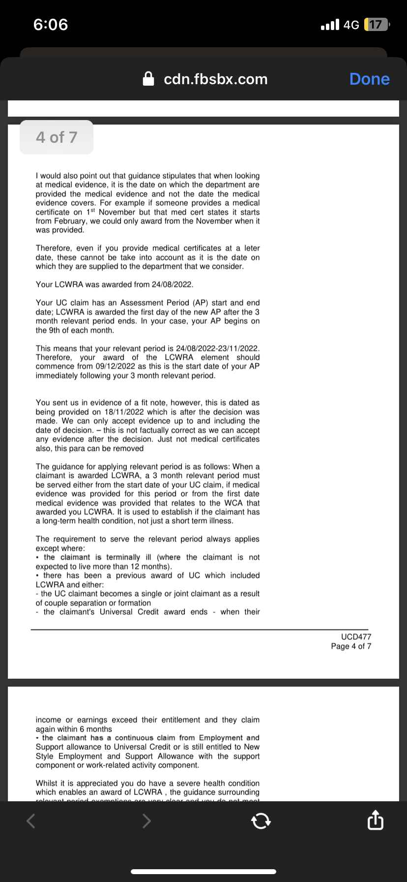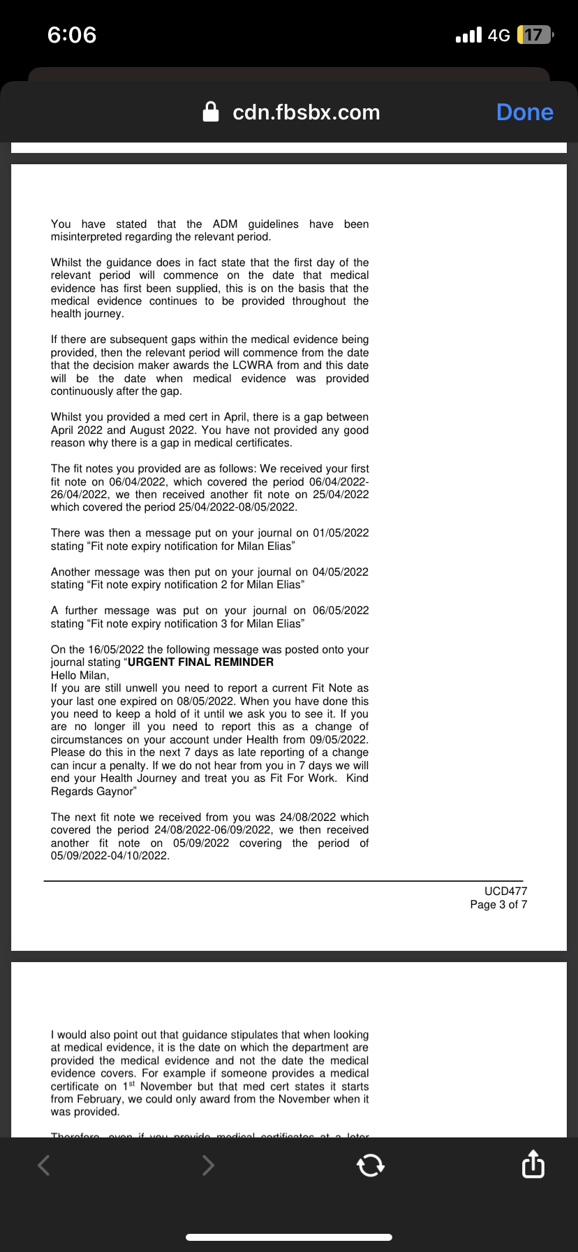 However you said that the UC 50 was originally not returned and there were some gaps in the Fit Notes which could revise the above sequence as previously advised.