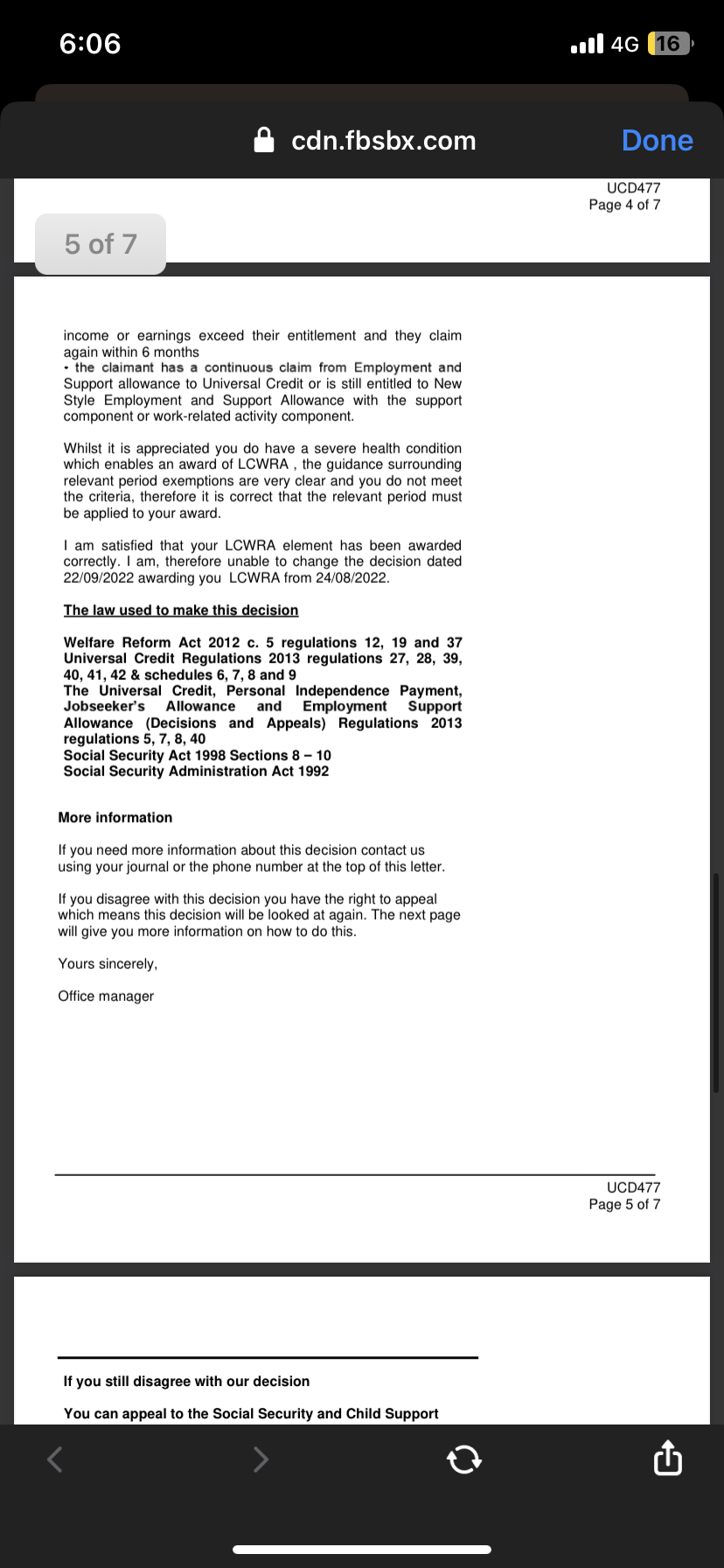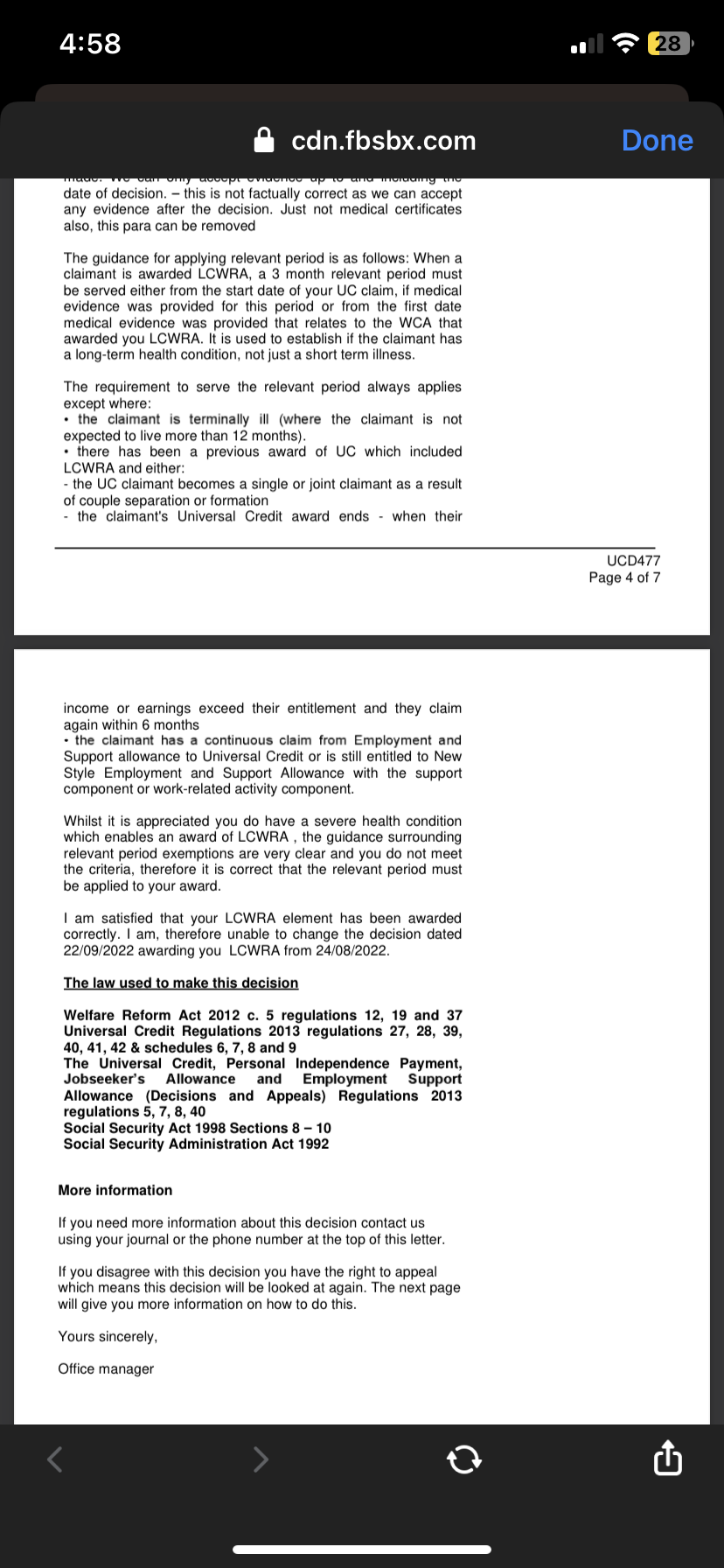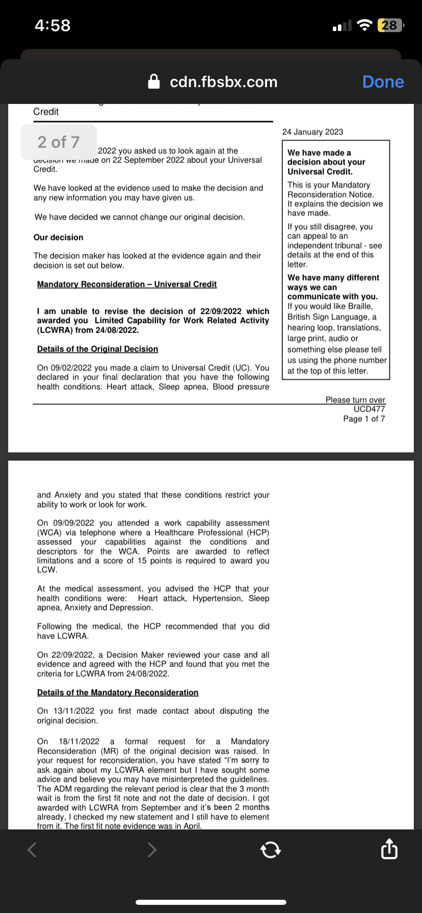 However you said that the UC 50 was originally not returned and there were some gaps in the Fit Notes which could revise the above sequence as previously advised.